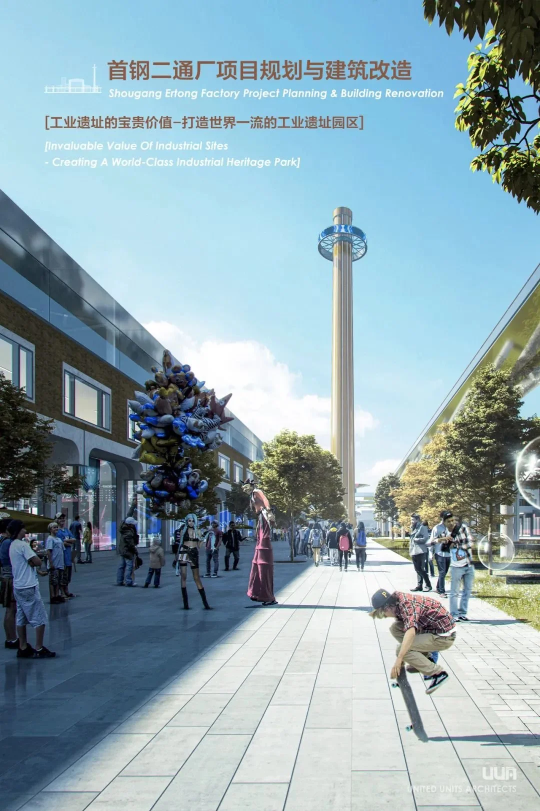 UUA 以创造一个活力的文创园区为目标,将建筑更新为城市的区域性地标建筑,复合业态的载体,文化价值呈现的媒介,同时也是一个面向公众开放的、有活力的城市节点。