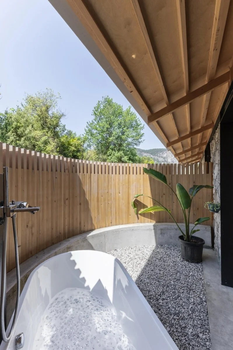 房屋的建造利用了可再生木结构和回收石墙的组合。通过重复使用现有旧村庄房屋的石头,该项目不仅减少了环境影响,还提供了良好的隔热效果。这些材料的整合增强了建筑的热性能,减少了供暖和制冷的能源消耗,同时提高了项目的整体效率。