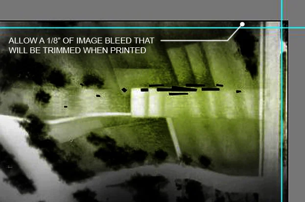 铺满尺寸:作品集应该永远铺满尺寸。图片铺满尺寸是指图像和图形大于页面的边缘。这允许在打印和裁切出现错误时,又可回旋的余地。你会看到,当我设置我的页面时,我给每个边缘一个 1/8“ 额外的大小。代替 6“×9”,因此,它是一个 6-1/4“×9-1/4”。最专业的打印机会要求这一数额的延伸。这也是一个好的数值,当你自己打印和裁剪的时候。