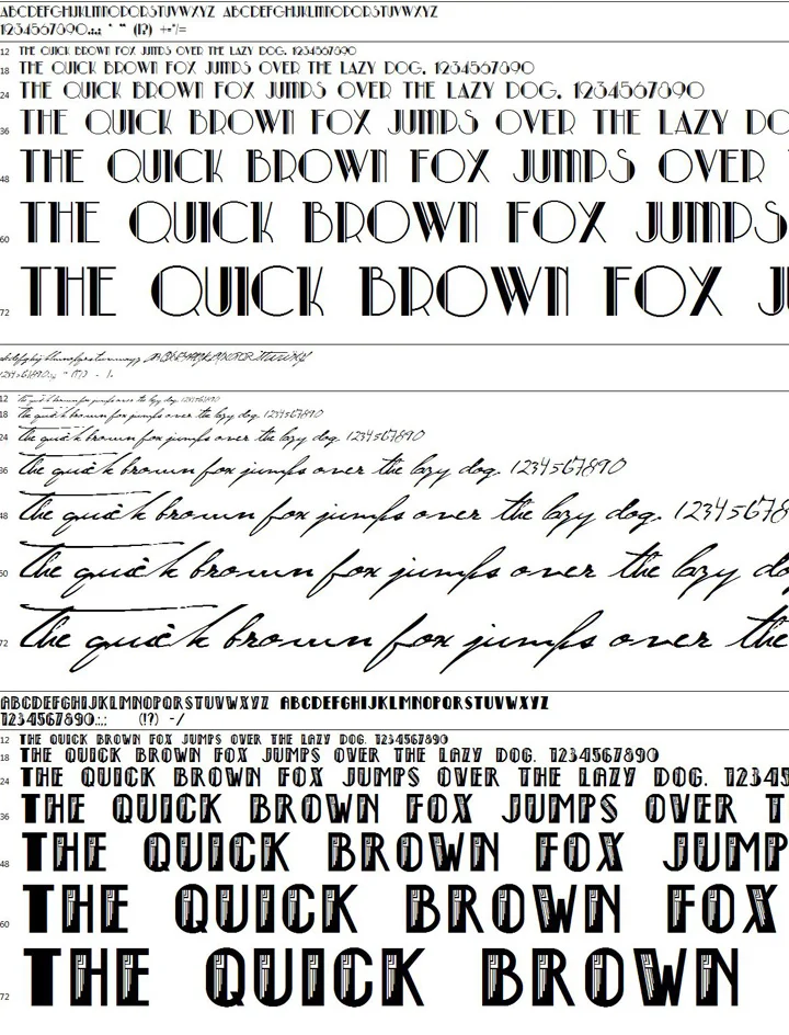 要继续装饰艺术(art deco)的概念,我需要一些好的字体。我在 dafont.com 快速寻找,发现行之有效的东西,我需要一些不错的风格的字体。我敢打赌,我设计请柬时间的 50% 都花在寻找和测试出的字体不同的组合。