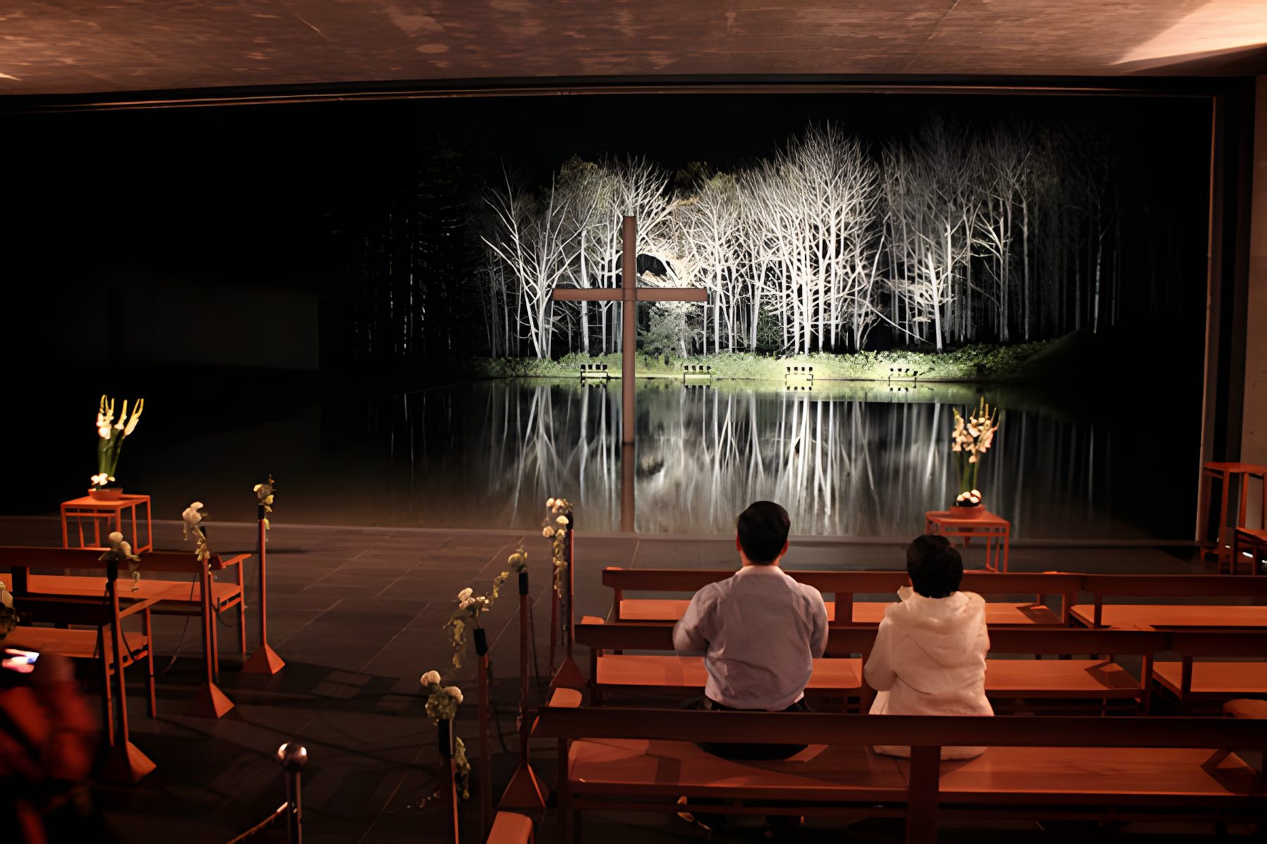 这座教堂在建筑领域具有至高无上的地位。十字架实际上被穿透在墙上,通过光的照射,呈现出一种最纯粹的形式。