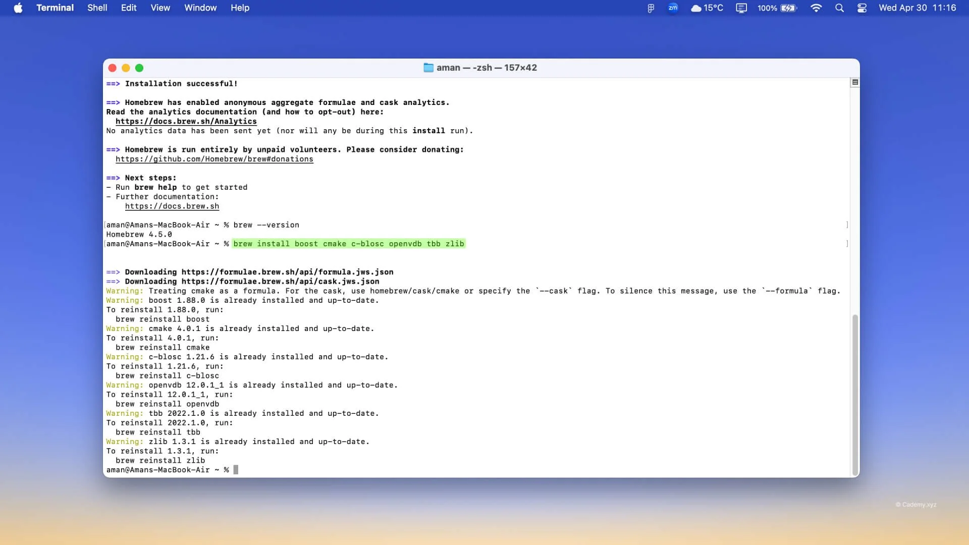这可能需要几分钟时间。这些是让 Dendro 能在 Mac 上正常运行所需的组件。