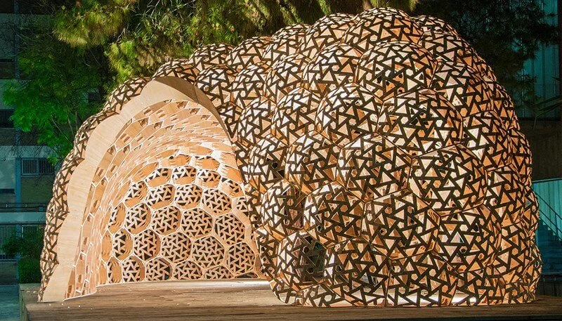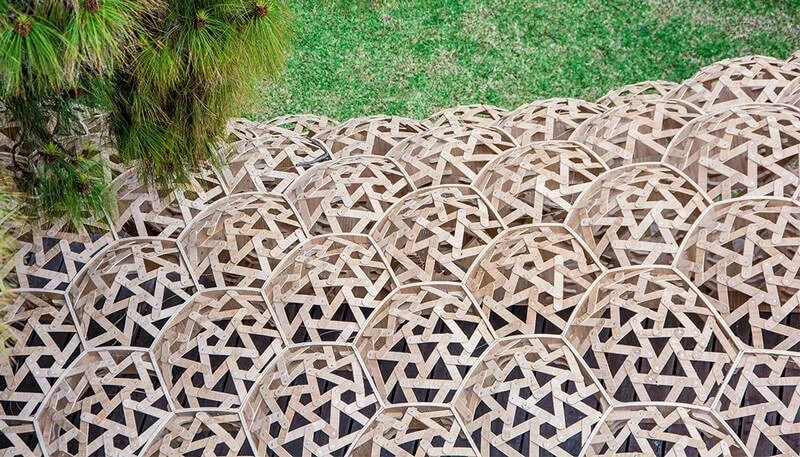 2018 年初,塞维利亚大学建筑工程高等技术学院启动了一项雄心勃勃的计划,建造一座实验性展亭——“泡泡亭”(Bubble Pavilion),以胶合板作为主要原材料。