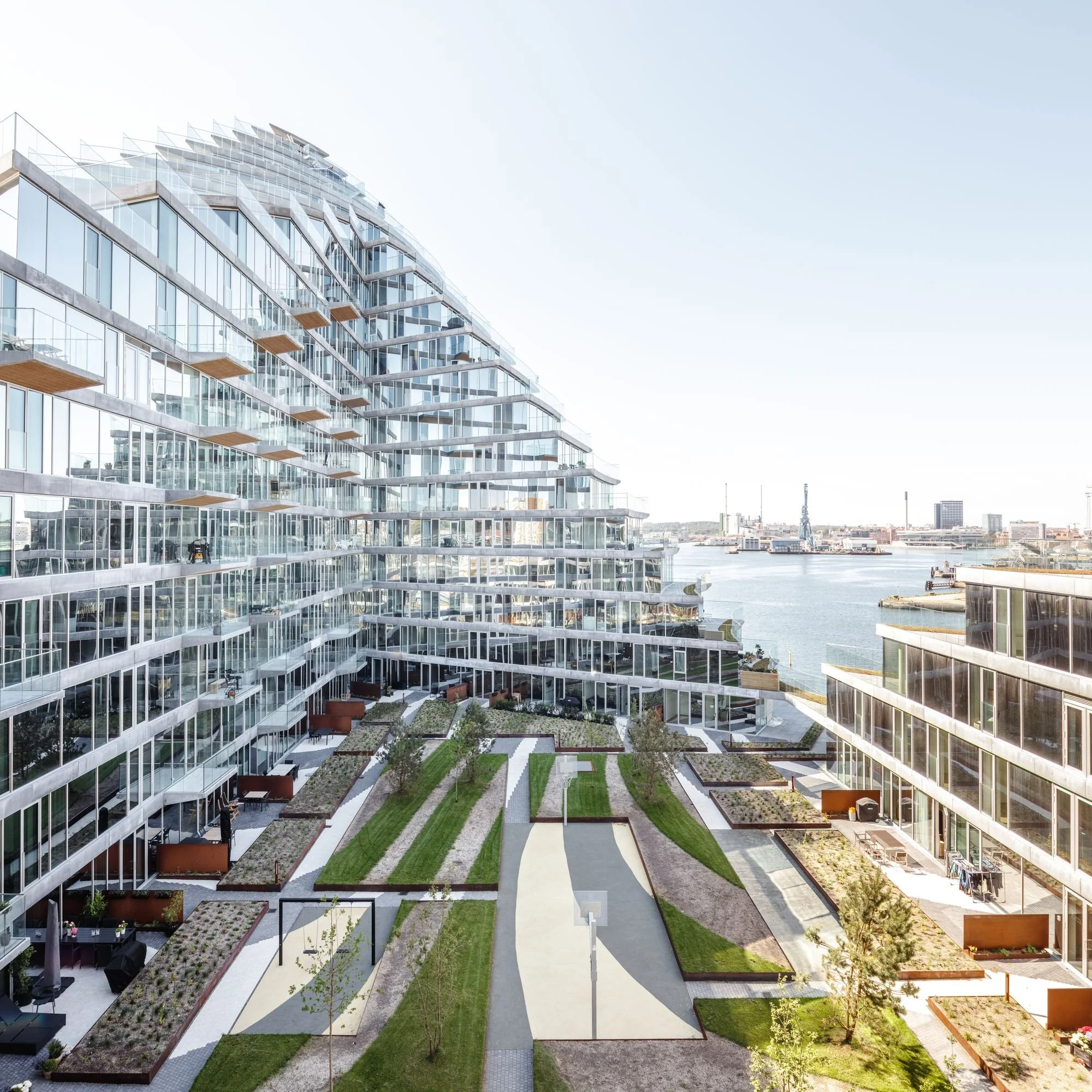丹麦第二大城市正在重新发现其旧港口。当被要求在一个退役码头上对整个岛屿进行总体规划时,我们发现城市生活已经提前到来。一个由几个容器和一堆沙子制成的海滩酒吧证明了生活不需要建筑物——情况恰恰相反。我们决定颠倒这个过程,在周围的建筑之前设计总体规划的公共空间,所以这些建筑是由它们之前的生活塑造的。一条新的公共长廊将城市与大海连接起来。我们没有礼貌地跟随码头,而是提出了一个脉动的轨迹,定义了一系列陆地和水上的新公共空间:一个海港浴场、一个漂浮的海滩、一个剧院和一系列在公共领域建造为凉亭的浴室。建筑物之间的生活,领先于建筑物本身。我们沿着海滨设计了三个结构。两座带有露台的房屋山峰标志着港口的入口。将长廊从水中延伸到天空的金字形酒店。还有一座钟楼——大本钟的一种住宅形式——被设计成一个独立的细长钟楼,让居民可以住在钟面内。我们经常发现自己无法在老街区创造出我们喜欢的古怪魅力。通过让生命至上,我们在奥胡斯创造了一个城市岛屿,被现实生活的自然副作用所感染。