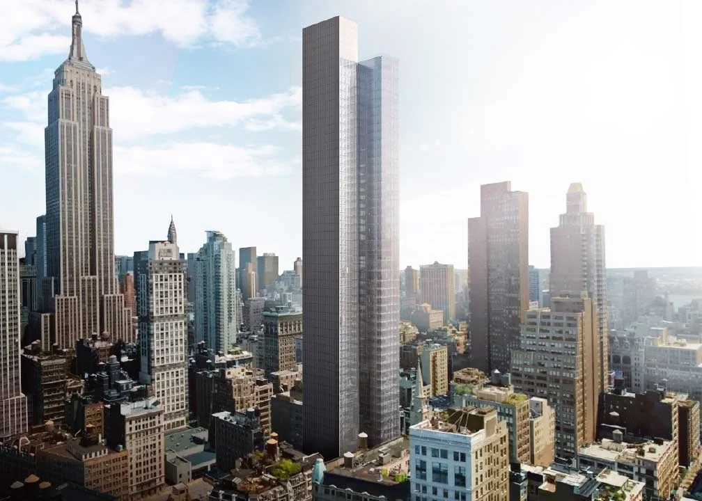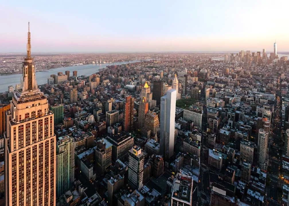 曼哈顿 NoMad 街区密集的中间街区被顽固分子折磨,导致不规则的足迹排除了传统的矩形挤压。我们决定将典型的塔分成三个基本的规划要求:一塔用于流通,一塔用于工作,一塔用于自然。每座塔都为其独特的项目量身定制。工作塔是一个水晶体量,有 4 米的落地玻璃、无柱转角,以及最大限度地提高自由度和灵活性、日光和视野的开放式平面。在一侧,一个单独的出口楼梯构成了一种茎,梯田的花瓣从茎中伸出,形成一个交错的空中花园柱子。循环核心将楼梯和电梯、机械室和浴室浓缩成一个独立的大理石巨石。巨大的 3x8.5 米白色混凝土抛光预制板以不规则的图案波纹形成巨大的大理石块的纹理。就像曼哈顿中城摩天大楼之间的一座 305M 高的奥尔登堡。与其将所有的塔和它们的所有程序强制成一个单一的形式,不如将塔捆绑让它们中的每一个都以最明显和最有力的方式表达它的真实本质。一个充满活力和多样化的三重奏,而不是一个镇静的独奏。